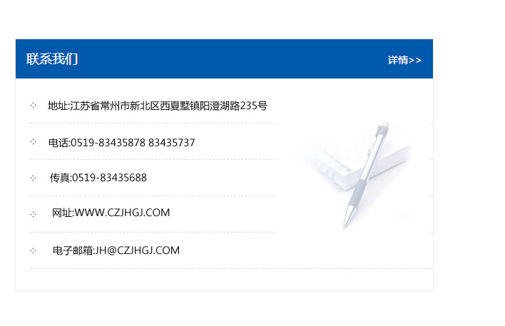 傳真:0519-83435688    郵編:213135    網址:WWW.czjhgj_com.bjzjjl.com    電子郵箱:JH@czjhgj_com.bjzjjl.com